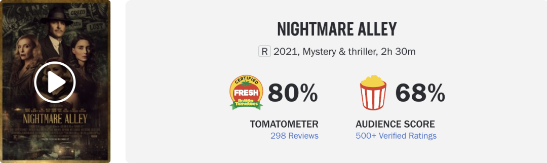 R级悬疑惊悚电影《玉面情魔》(Nightmare Alley)