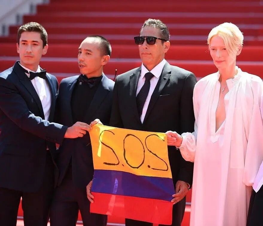 主创曾在戛纳红毯上举起哥伦比亚SOS的国旗也是为上世纪这个国家发生的动乱发声,片中街头听到汽车爆胎都会下意识倒地逃跑的人映射时代留下的PTSD。