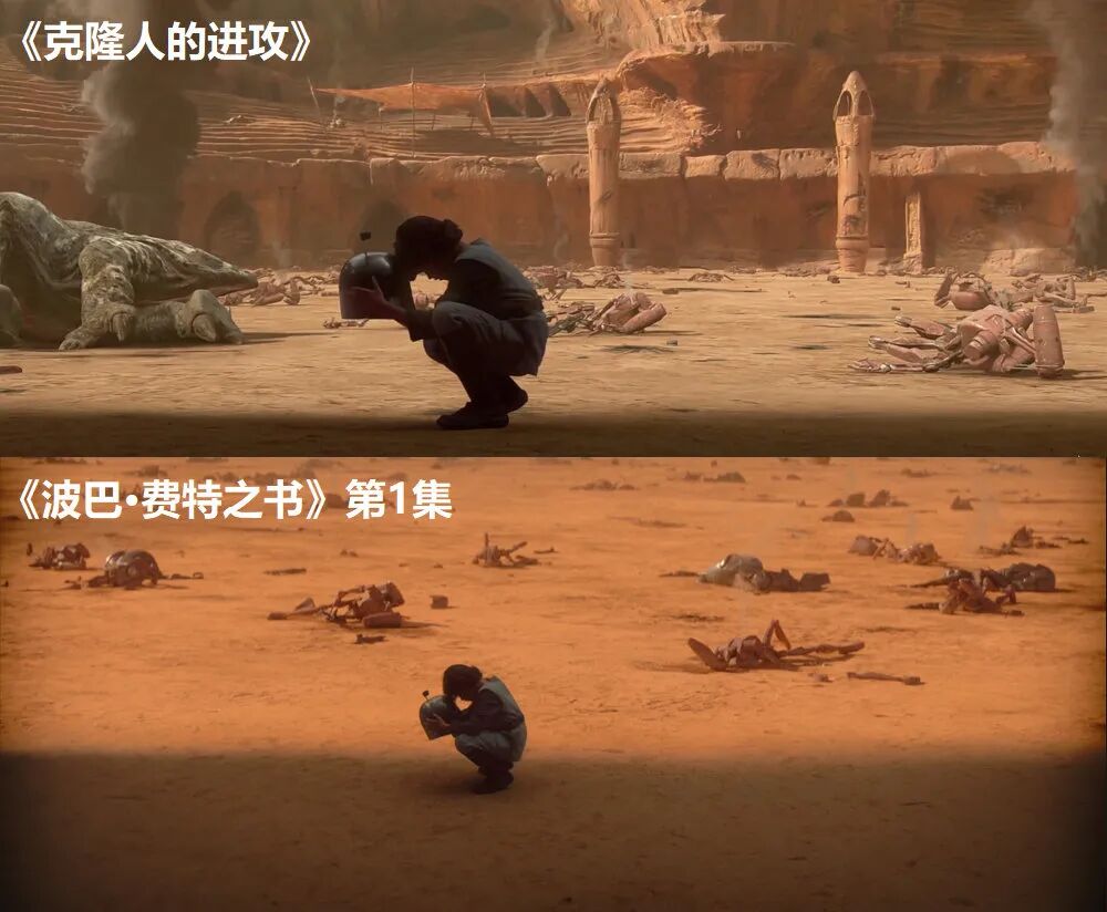 一个小小的塔图因星球,从《星球大战9》到《曼达洛人》再到《波巴·费特》,很快迎来《欧比旺》,这简直是高效利用置景的典范,活脱脱一个小《沙丘》。