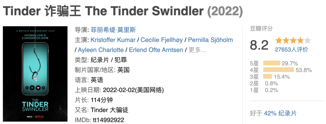 这部纪录片应该算是非常大胆的尝试——Tinder诈骗王(The Tinder Swindler)