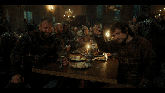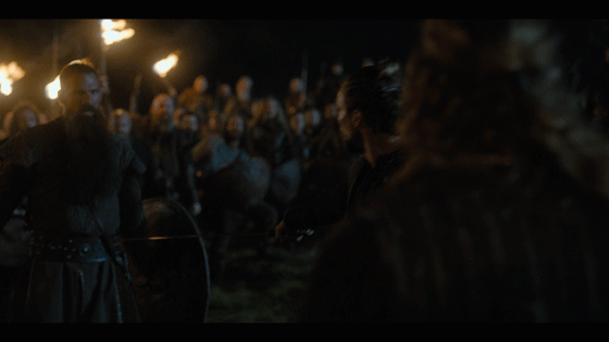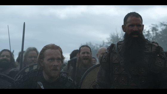 一切都太干净了,场景布置细节精致,取景地氛围浓厚,战斗结束,道具没什么损耗,人物穿着样貌装束明显,剧里血腥断头画面不少,但一味滋血嗯嗯啊啊和文学历史中描述的维京人战斗实在是相差甚远。