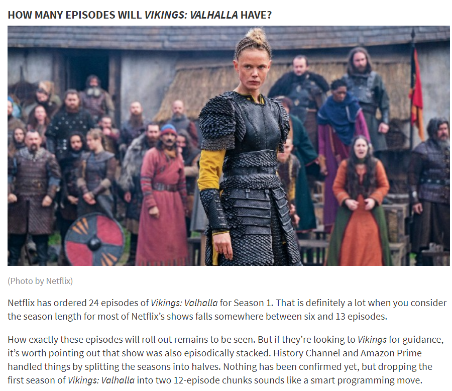 2月25日,网飞播出了《维京传奇》系列的最新剧集《维京传奇:英灵神殿》第一季。