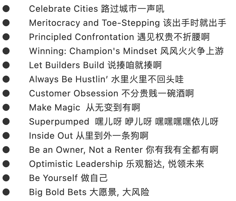 当时的14大价值中,还包含 “Always Be Hustlin‘”,以及“Make Magic”等等等等。