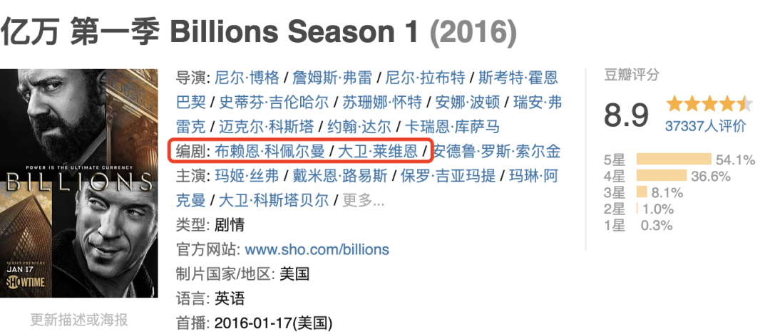 编剧是《亿万》的两位主创,布莱恩·科佩尔曼和大卫·莱维恩。