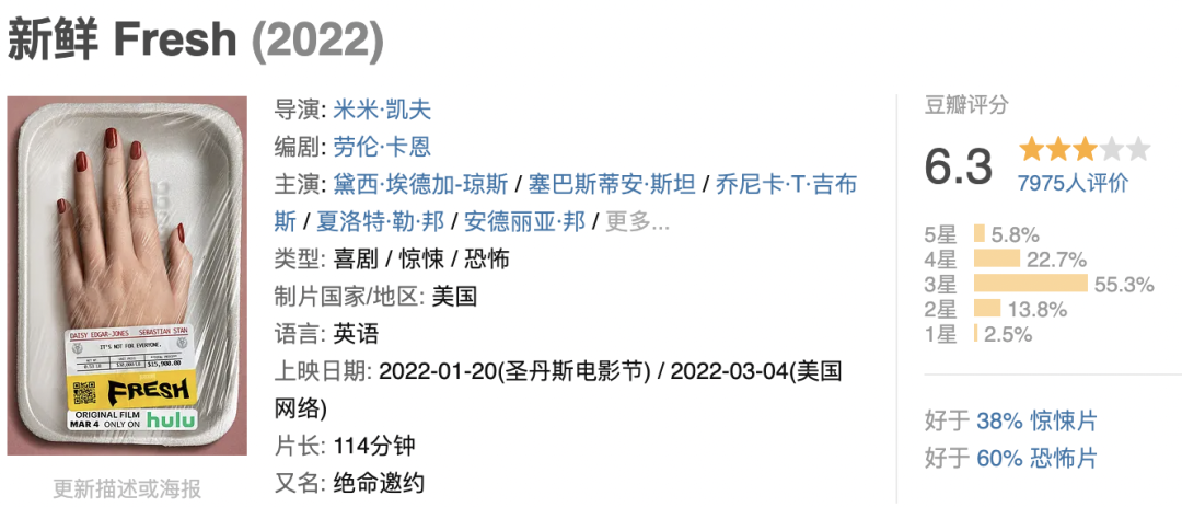 春暖花开,就在开启减肥计划的第一天半夜,我打开了这部《新鲜》( Fresh)