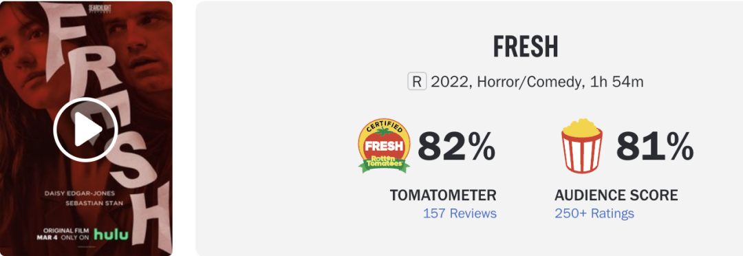 目前本片烂番茄新鲜度达82%,已经获得新鲜认证!