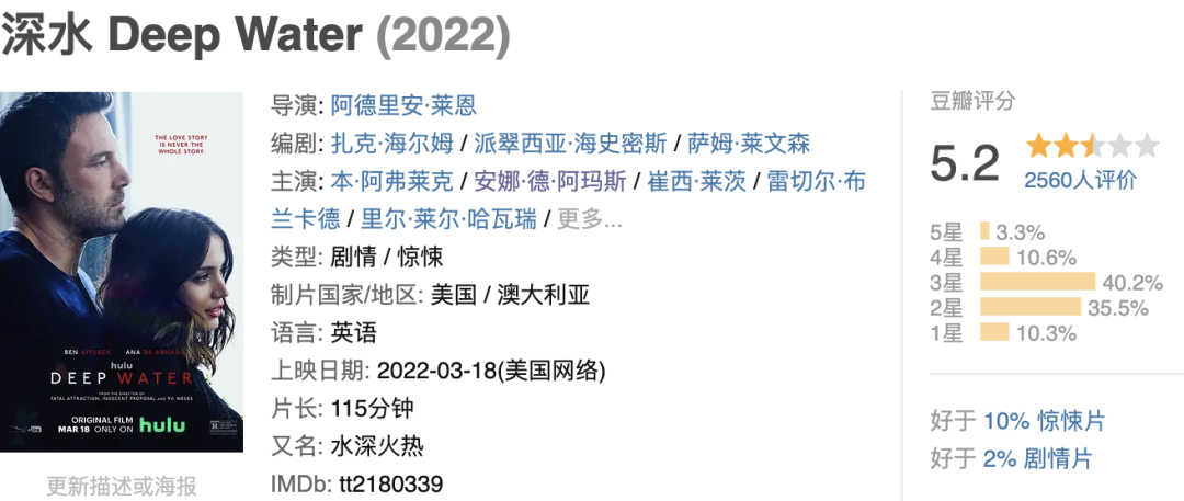 带着一部炒作了许久的情色惊悚片——《深水》(Deep Water)
