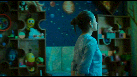 比如用充满科技感的方式,展现女主内心的混乱和不安。