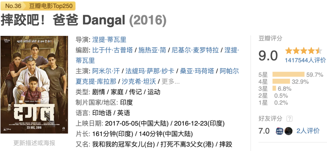 《摔跤吧,爸爸》可以说是一场漂亮的翻身仗,自此以后嘲笑印度电影的声音越来越少,褒奖越来越多。