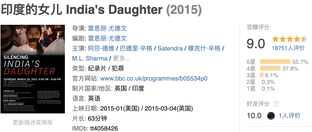 这起案件有一部更加真实恐怖的作品——被印度封杀的BBC纪录片《印度的女儿》
