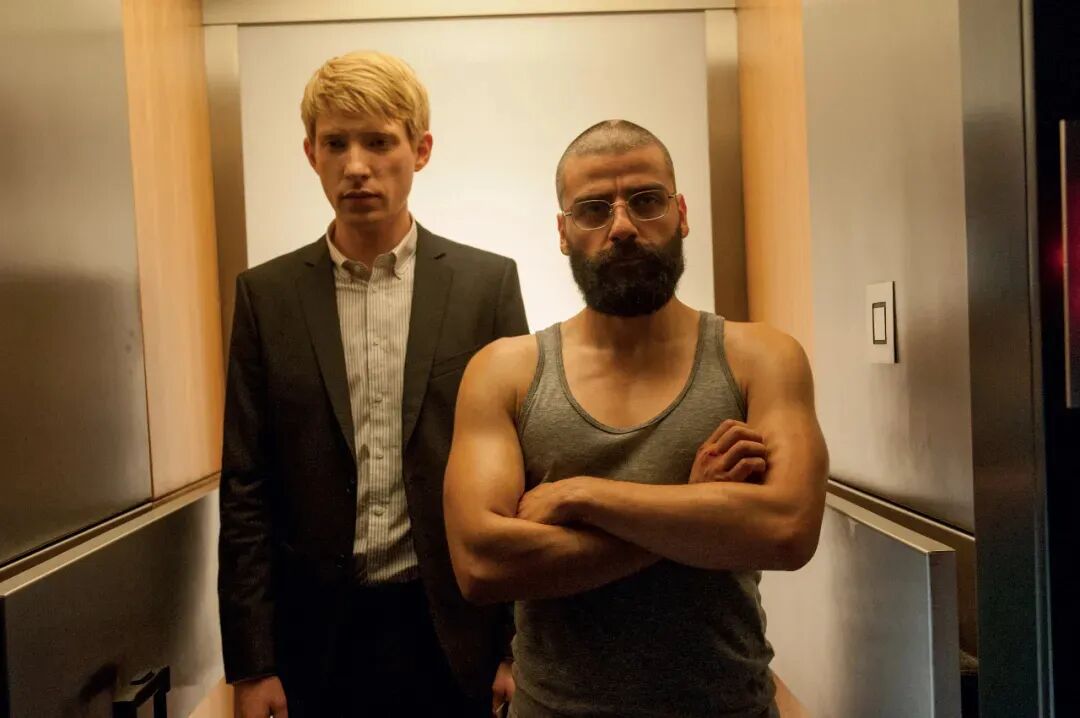 在《机械姬》中,他剃个圆寸加上挂饭渣的浓密胡须。