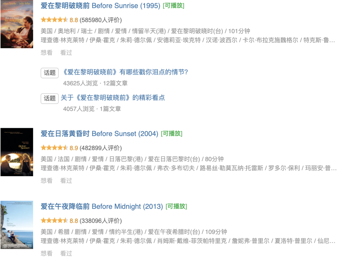 这三部曲可以说是爱情文艺片典范,很多电影爱好者的挚爱。