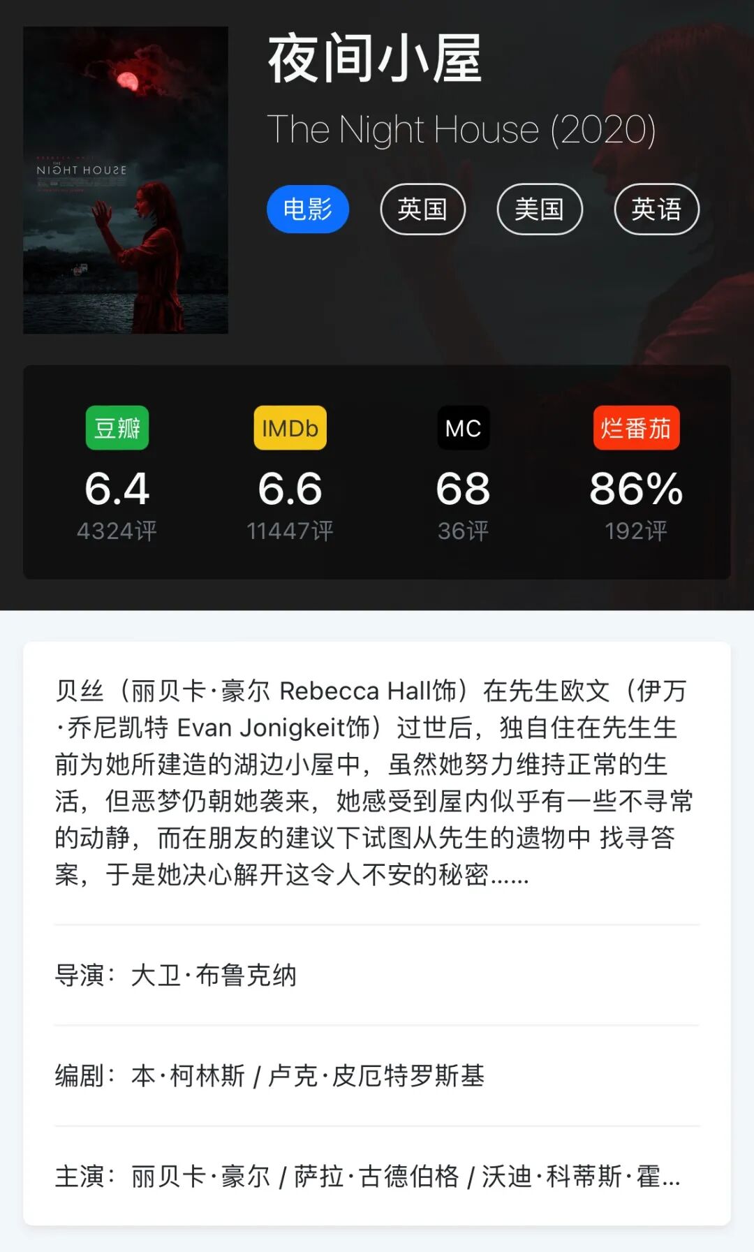 在霍尔令人难以置信的表演下,《夜间小屋》迂回曲折,将可怕的视觉效果和令人毛骨悚然的情节与发人深省的情感故事节奏交织在一起。这一结果造就了今年最好的恐怖电影之一。