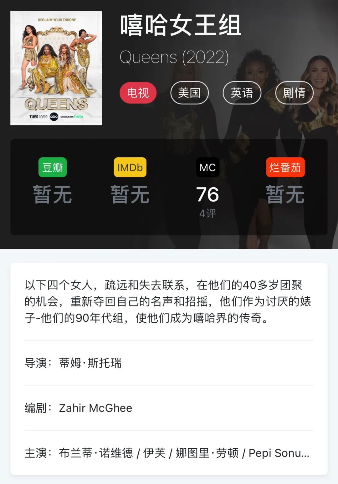 《嘻哈女王组》(Queens)的试播集高效、生动、有趣,不会让人感觉内容过多,这是一个了不起的成就,因为它有许多交叉的情节线。《嘻哈女王组》的核心四人组也带来了关键的技巧和个性。
