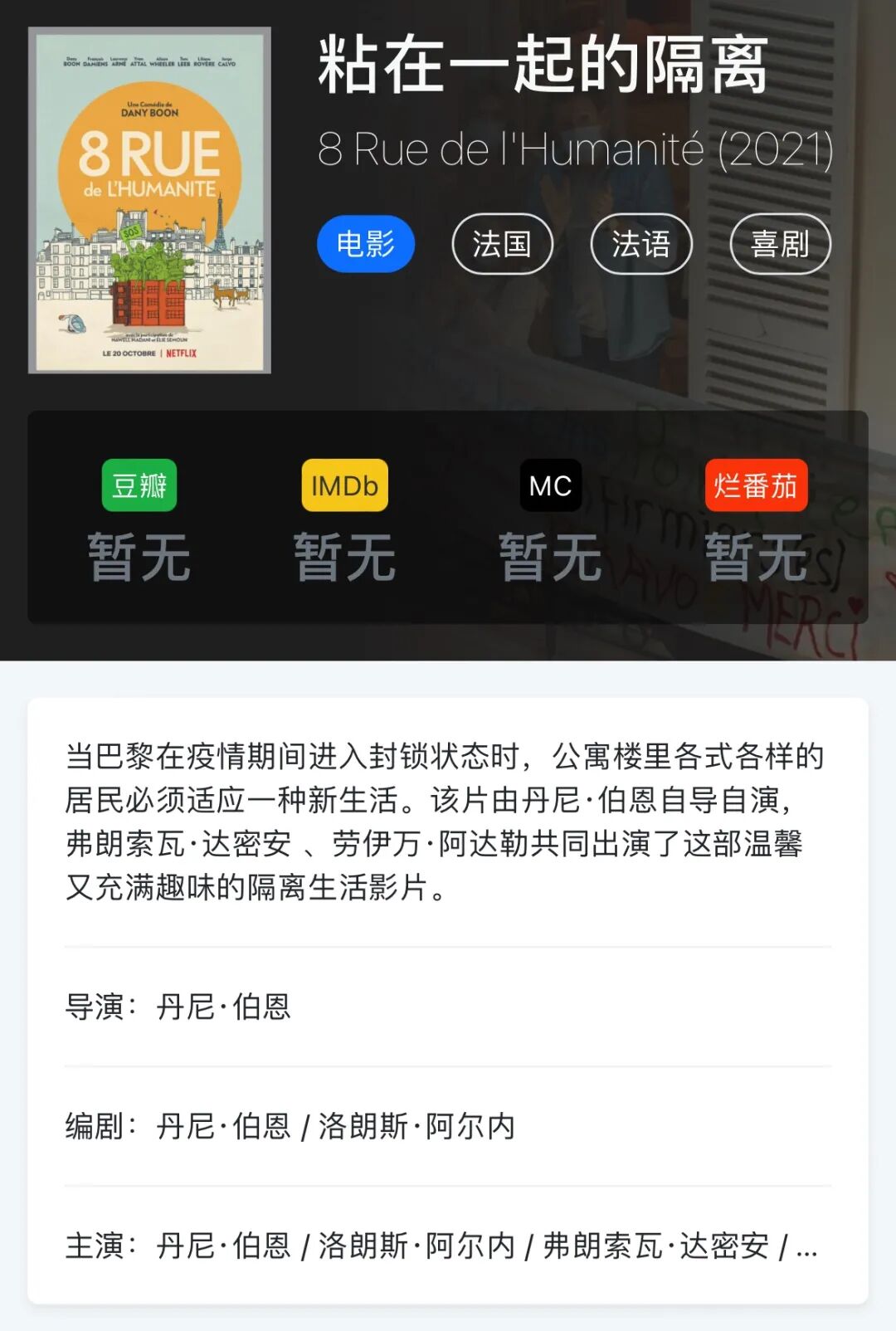 10月20日周三,有四部新片今日上线流媒体。《权力的游戏》臭佬席恩出演的网飞的吸血鬼主题新电影《暗夜獠牙》(Night Teeth),abc的中年嘻哈女性组合重组剧集《嘻哈女王组》(Queens),网飞的纪录片《找寻》(Found)讲述被领养到美国的中国少女长大后回到中国的寻根过程,网飞的新冠背景法语喜剧电影《粘在一起的隔离》(8 Rue de l'Humanité)。