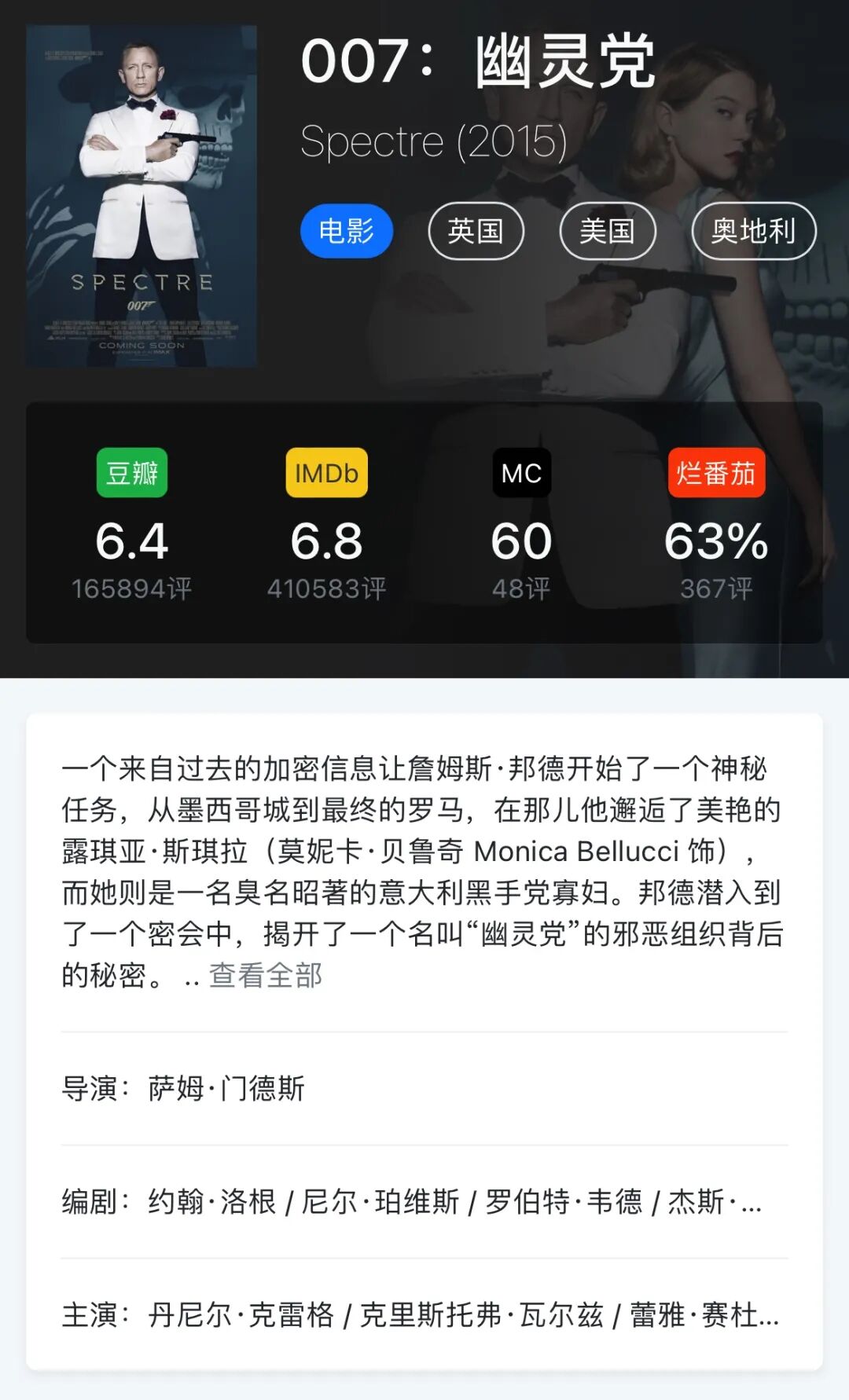 豆瓣 6.4 IMDb 6.8 MC 60 烂番茄 63%