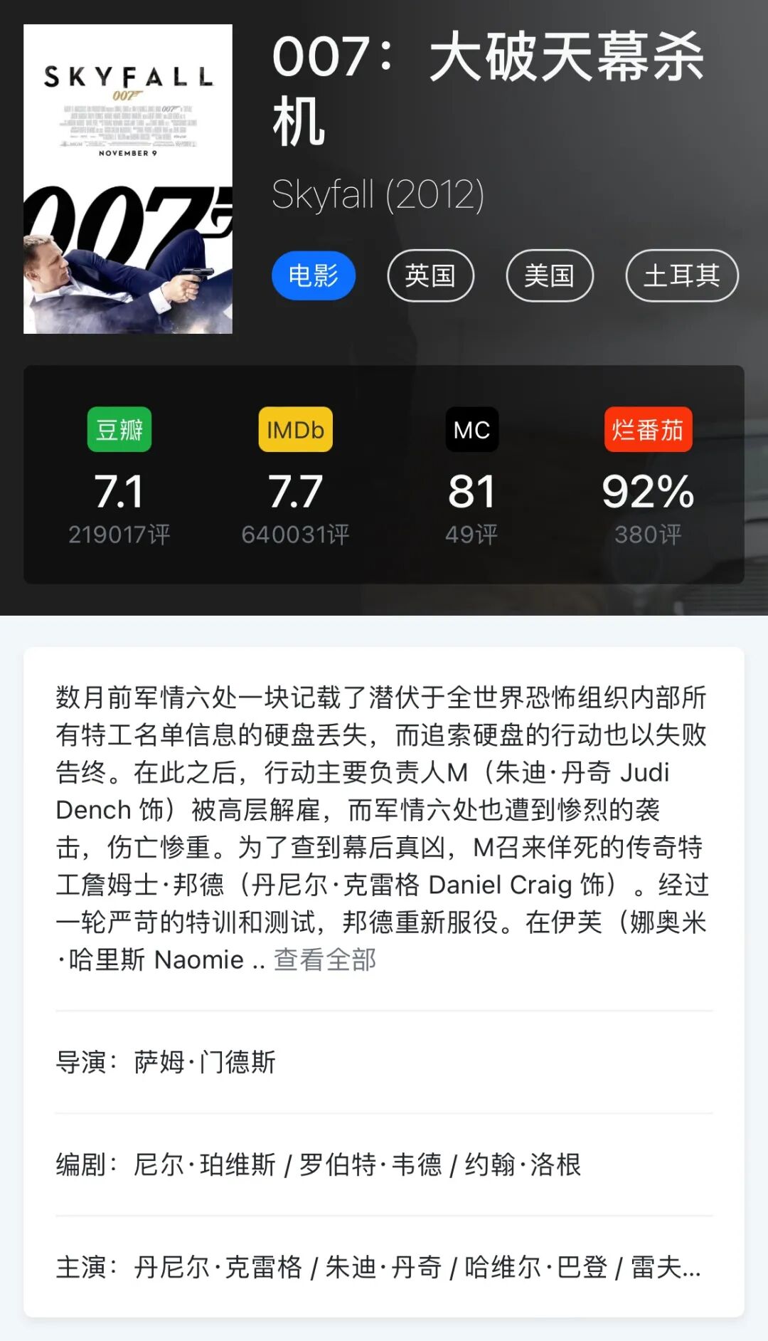 豆瓣 7.1 IMDb 7.7 MC 81 烂番茄 92%