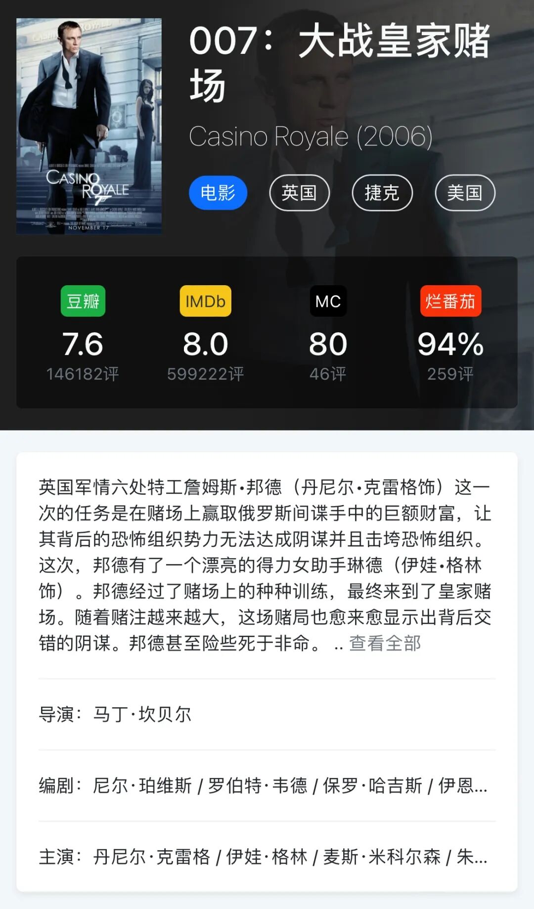 豆瓣 7.6 IMDb 8.0 MC 80 烂番茄 94%