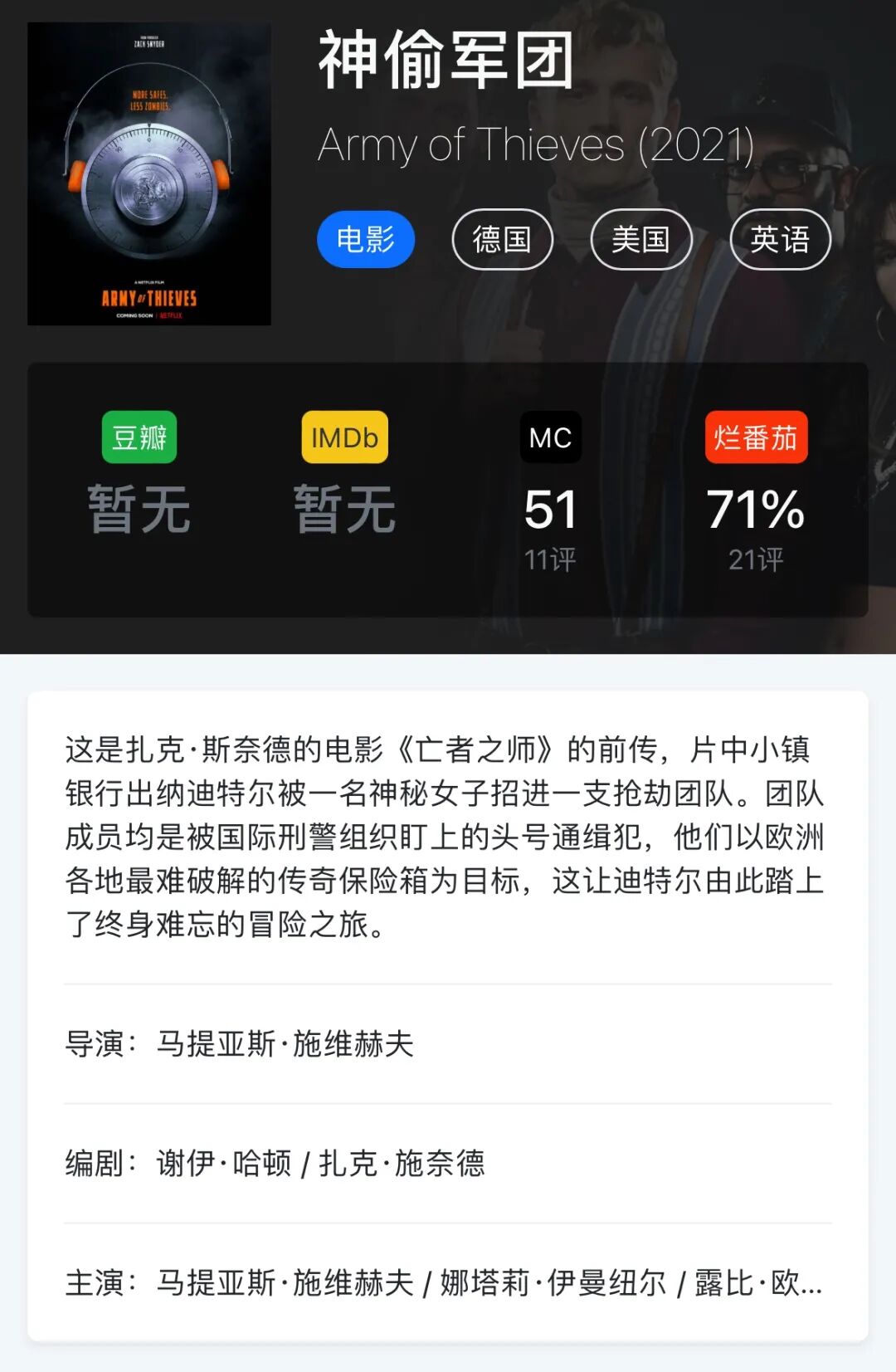 经常处于口碑两极化的扎克·斯奈德监制的新电影《神偷军团》(Army of Thieves)上线了,该片是《活死人军团》(Army of the Dead)的前传,由原片中的盗贼扮演者马提亚斯·施维赫夫自导自演,讲述他是如何走上这条不归路的。
