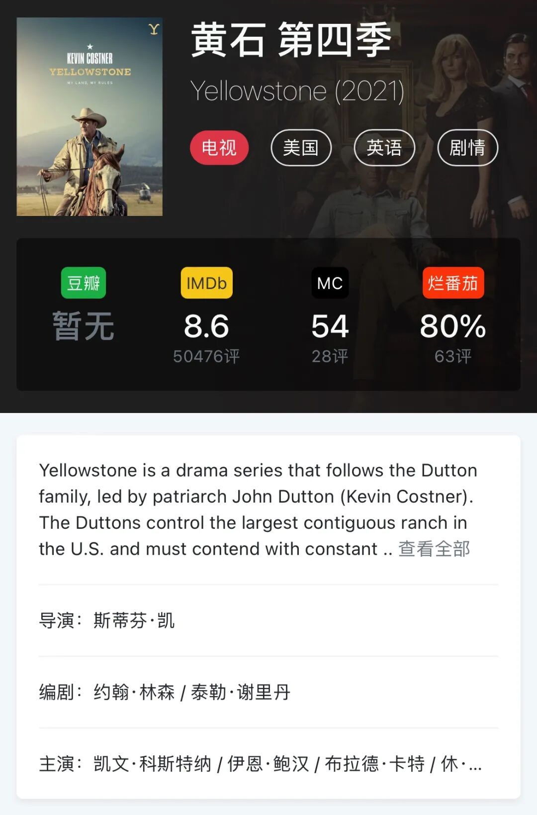 以《边境杀手》(Sicario)编剧出名的泰勒·谢里丹,和《混乱之子》(Sons of Anarchy)制作人约翰·林森一起打造,《与狼共舞》(Dances with Wolves)凯文·科斯特纳领衔,这三人混搭出来的西部牛仔+黑帮政治+家族抓马集合一体的《黄石》(Yellowstone)第四季今日回归了。