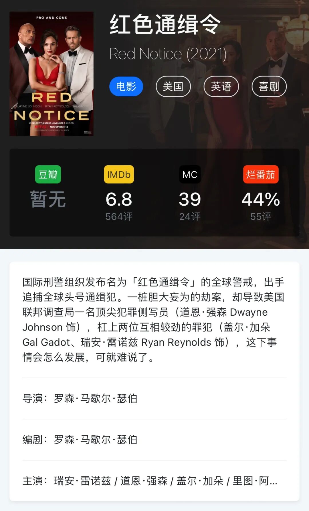 道恩·强森(Dwayne Johnson)、瑞恩·雷诺兹(Ryan Reynolds)和盖尔·加朵(Gal Gadot)主演的这部快节奏动作惊悚片带有俏皮的喜剧元素,其娱乐效果毋庸置疑。