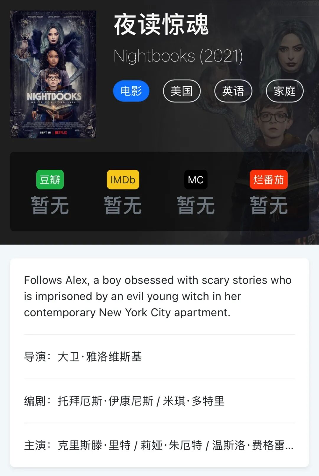 喜爱恐怖故事的小男孩艾力克斯必须每晚说一个惊悚童话,否则便会和新认识的朋友被永久禁锢在邪恶女巫的魔法公寓里