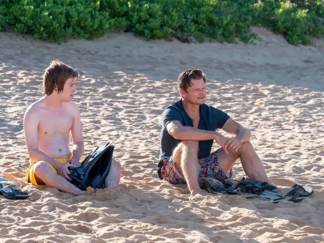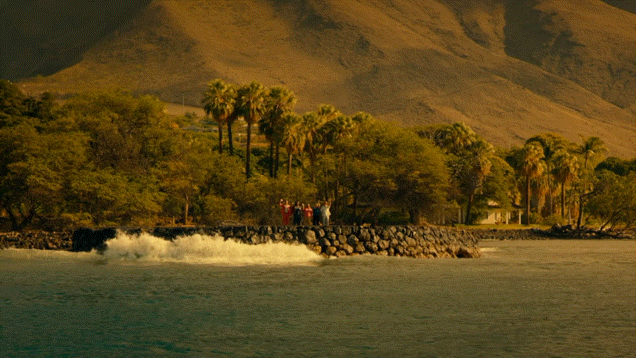 明媚的夏威夷海滩,与诡异的阴森配乐形成鲜明的对比。