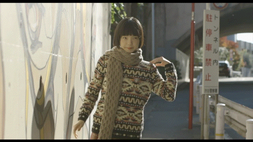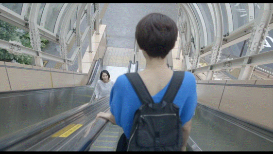 结尾处,在车站门口的天桥上,小林与夏子分别后又折跑回来。