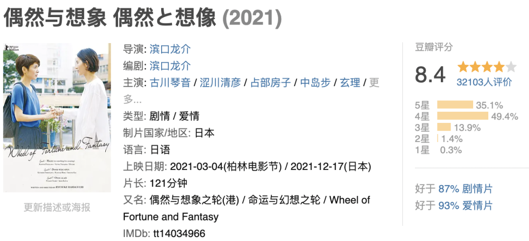 也许导演只是想告诉我们,人生中大多数时间都是寡淡无味的,值得回忆的,只有某些「偶然与想象」