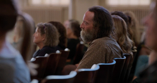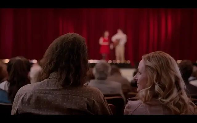 无声世界的父亲看着台上穿着红裙子的露比,他只能靠周围人的反应得知一些讯息。