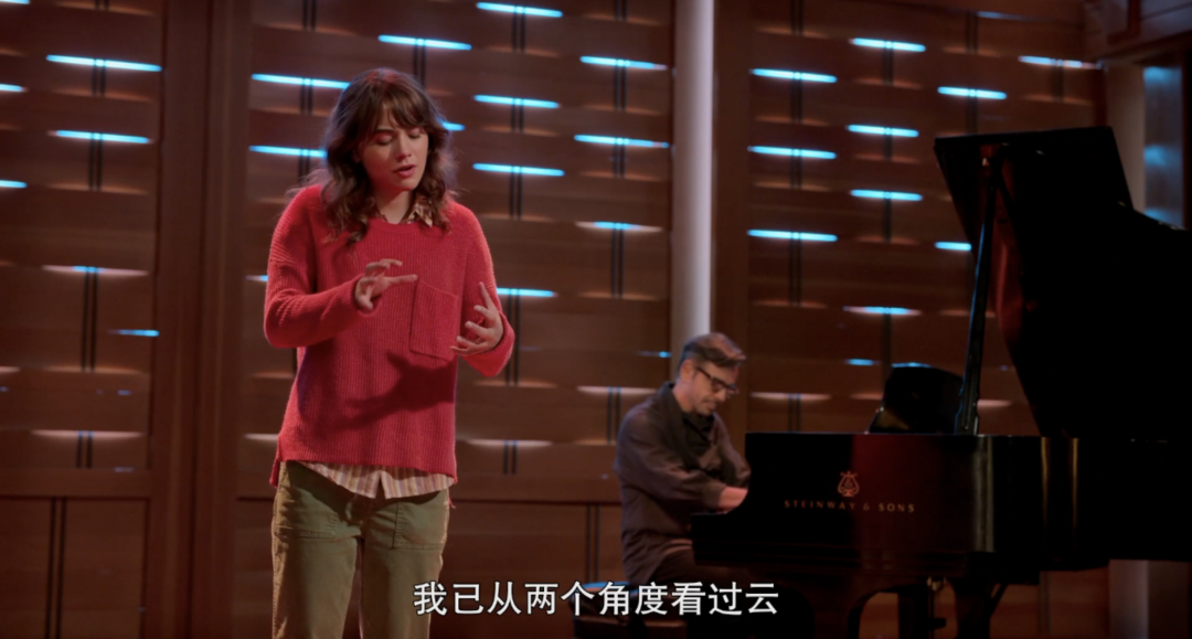 露比在面试中,结合手语为家人和面试官演唱琼妮.米歇尔(Joni Mitchell)的《Both Sides Now》