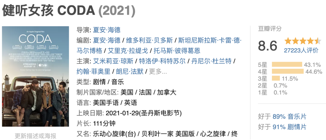 从任何角度来看,《健听女孩》(CODA)这部电影都应该是一部神作。