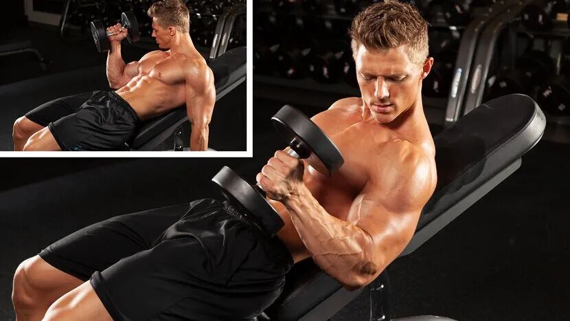 为什么出现在表单上:90度和45度的弯举究竟有什么区别呢?区别大了去了!上斜的哑铃弯举首先拉长了你的二头,增加了动作起始点的拉伸。理论上,这个动作可以针对于长头刺激,打造更高的肌峰。