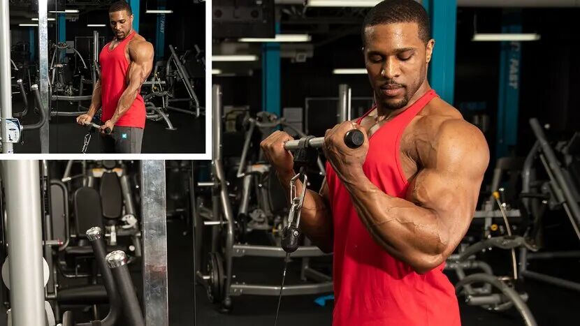 为什么出现在表单上:乍一看,这个动作有点像站姿的杠铃弯举。因为都是双手持把手,肩宽,反握。不同的是,就像那些最适合增肌的绳索训练动作一样,可以在整个训练过程中,给予你持续的肌肉张力。