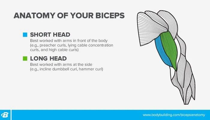 肱二头肌:肱二头肌和肱肌是大臂前侧的两块主要肌肉。名字来源于拉丁语,二头肌,顾名思义也就是肌肉的两个头,也就是肱二头肌的长头和短头。