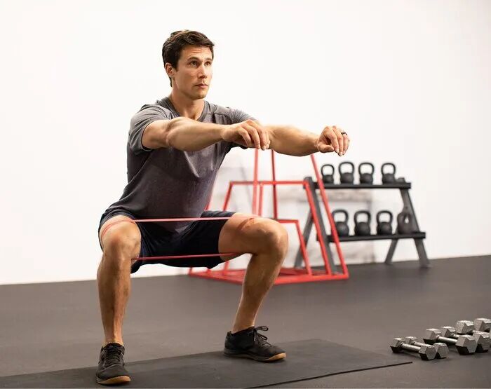 弹力带深蹲。深蹲的时候在膝关节上方加一个弹力带,可以更好的激活臀中肌。