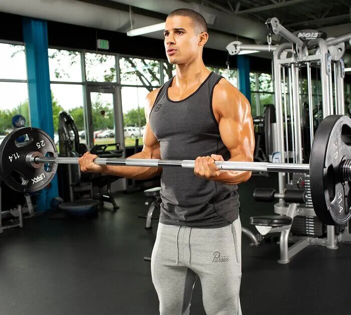 每次都用装满杠铃片的杆子哼哧哼哧的猛练,是不是让你充满自豪?殊不知在这个过程中,你的整个大臂伸直整个身体都跟着来回摇晃,那么我们的肱二头肌其实参与的很少。