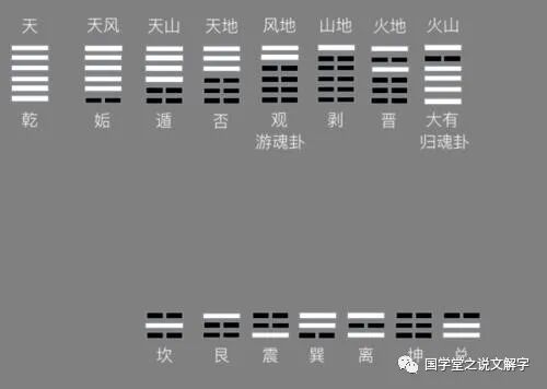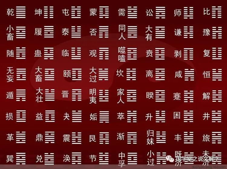 操作法:用一枚一元人民币(硬币),随意向空中抛出,看其落地后是国徽面朝上,还是字面朝上。(这里假定以国徽朝上为正面,其实你可以自己随意确定哪面为正面)如果是国徽朝上,为阳爻,在纸上画一圆圈;如果是字面朝上,为阴爻,在纸上画一叉。这样连续抛出六次,或圈或叉从右到左(也就是从下到上)画完六次为止,为一卦。对应着下面的六十四个卦自己找“吉凶祸福”就可以了。