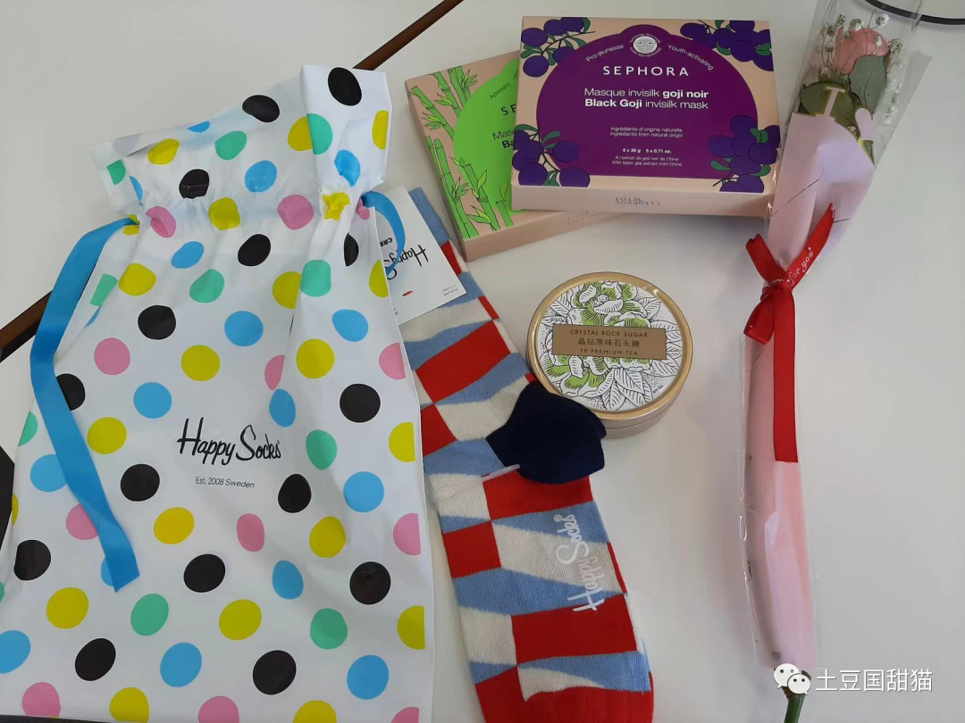 很多男同胞们抽到了外语原本书,还有一个男生抽到了面膜,他不用就送给我了。