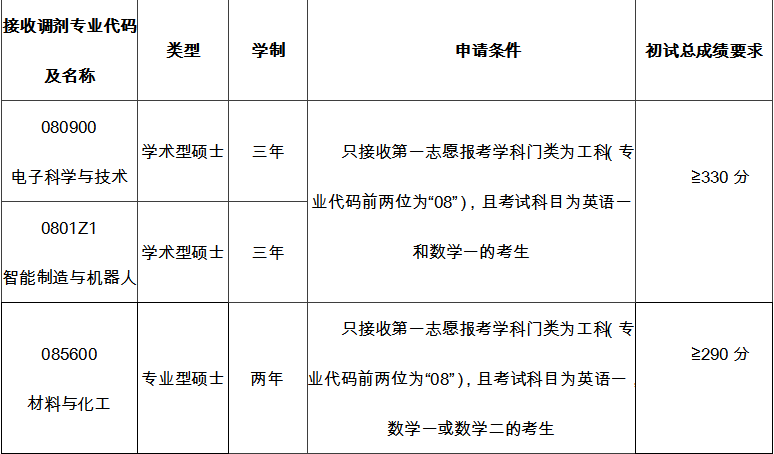 4、单科成绩符合调入专业在A区全国初试成绩基本线要求。