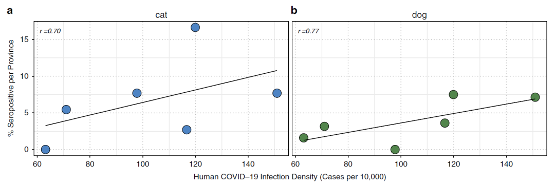 这项对新冠病毒的广泛流行病学调查发现,生活在人类高度感染地区的宠物已暴露在新冠病毒下,从而证实了之前关于新冠病毒对狗和猫的自然感染,也证实了猫和狗易感新冠病毒。