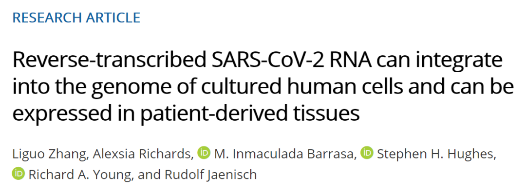 2021年5月7日,美国科学院院士、麻省理工学院 Rudolf Jaenisch 教授等在《美国科学院院刊》PNAS 上在线发表了题为:Reverse-transcribed SARS-CoV-2 RNA can integrate into the genome of cultured human cells and can be expressed in patient-derived tissues 的研究论文。