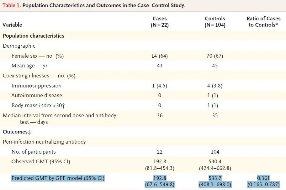这也是首个将疫苗接种后高水平中和抗体滴度与低突破性感染风险联系起来的真实世界数据。