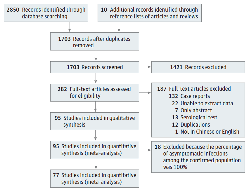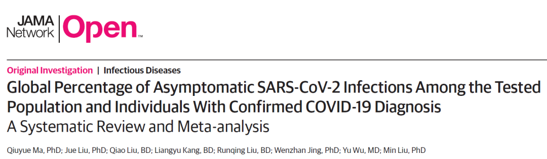 近日,北京大学公共卫生学院刘民教授团队在 JAMA 子刊 JAMA Network Open 发表了题为:Global Percentage of Asymptomatic SARS-CoV-2 Infections Among the Tested Population and Individuals With Confirmed COVID-19 Diagnosis:A Systematic Review and Meta-analysis 的论文。