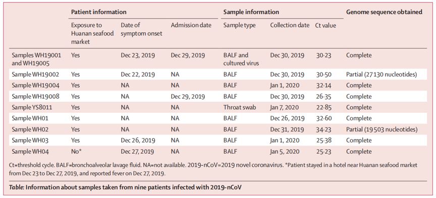 流行病学方面,9名确诊患者仅有8名有过华南海鲜市场接触史,表明2019-nCoV病毒的起源与该农贸市场有着极大的关联性。尽管如此,仍有一名患者虽然住在市场附近的一家旅馆,但从未去过市场,这一发现表明2019-nCoV可能存在未知感染源。