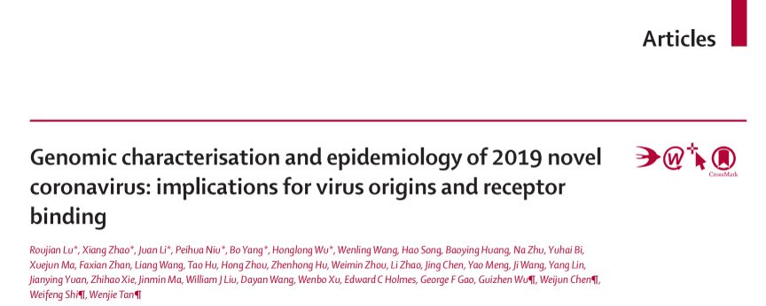 近日,中国疾控中心、山东第一医科大学和华大基因等机构联合在国际四大医学期刊之一的柳叶刀(Lancet)杂志在线发表了题为:Genomic characterisation and epidemiology of 2019 novel coronavirus: implications for virus origins and receptor binding 的研究论文。