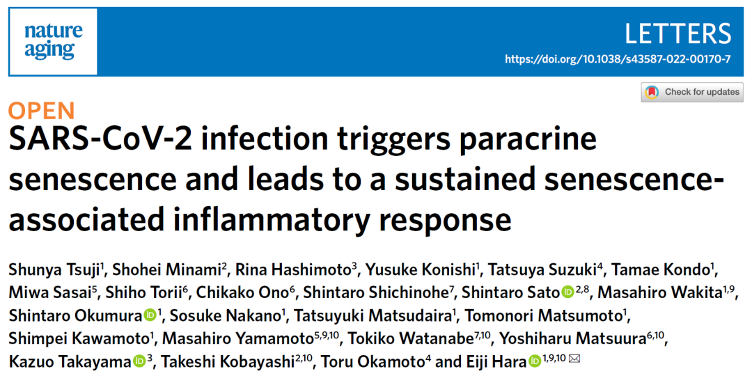 近日,日本大阪大学的研究团队在 Nature 子刊 Nature Aging 发表了题为:SARS-CoV-2 infection triggers paracrine senescence and leads to a sustained senescence-associated inflammatory response 的研究论文【1】。