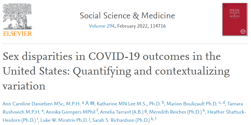 1.Danielsen AC, Lee KM, Boulicault M, et al. Sex disparities in COVID-19 outcomes in the United States: Quantifying and contextualizing variation [published online ahead of print, 2022 Jan 10]. Soc Sci Med. 2022;294:114716. doi:10.1016/j.socscimed.2022.114716