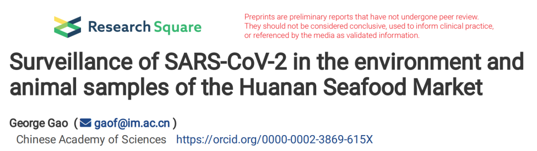近日,中国疾病控制预防中心主任高福院士团队在预印本平台 Research Square 发表了一份有关武汉华南海鲜市场新冠病毒来源的最新报告——Surveillance of SARS-CoV-2 in the environment and animal samples of the Huanan Seafood Market。