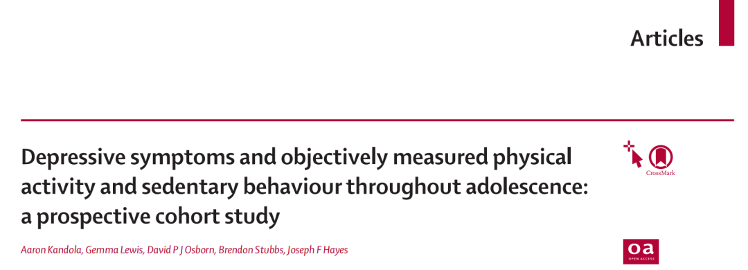 确定可改变的危险因素是减少青少年抑郁症患病率的关键。问卷调查数据表明,身体活动和久坐行为可能与青少年抑郁症状的产生相关,由此,Aaron Kandola等对两者的关联性进行了调查研究。